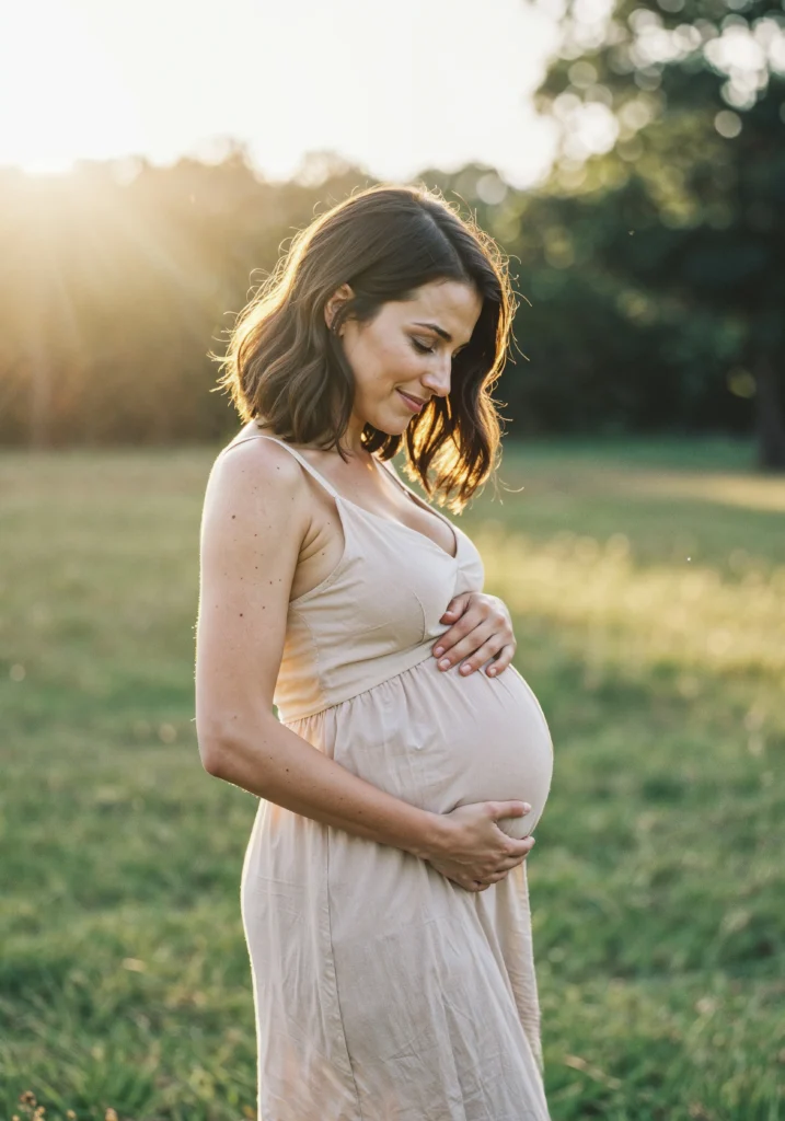mulher gravida no campo